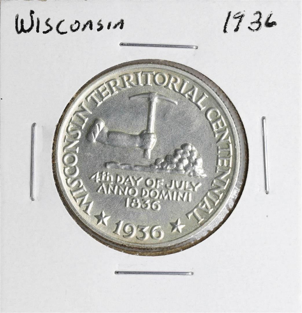 One 1936 Wisconsin Territorial Centennial Commemorative Half Dollar Coin.