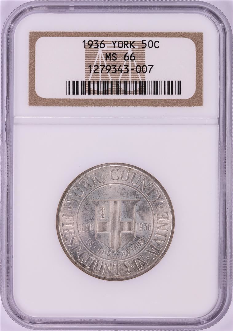 One 1936 York County Commemorative Half Dollar Coin NGC MS66. NGC Certified.