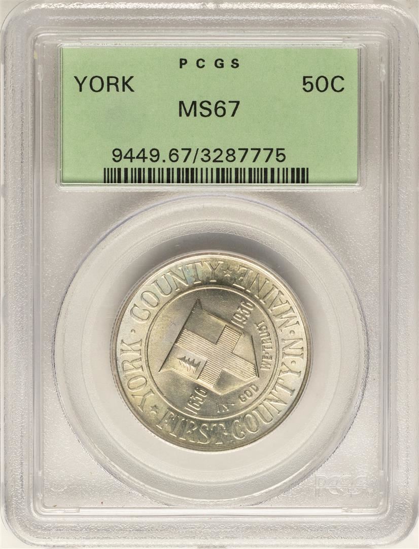 One 1936 York County Commemorative Half Dollar Coin PCGS MS67 Old Green Holder. PCGS Graded.
