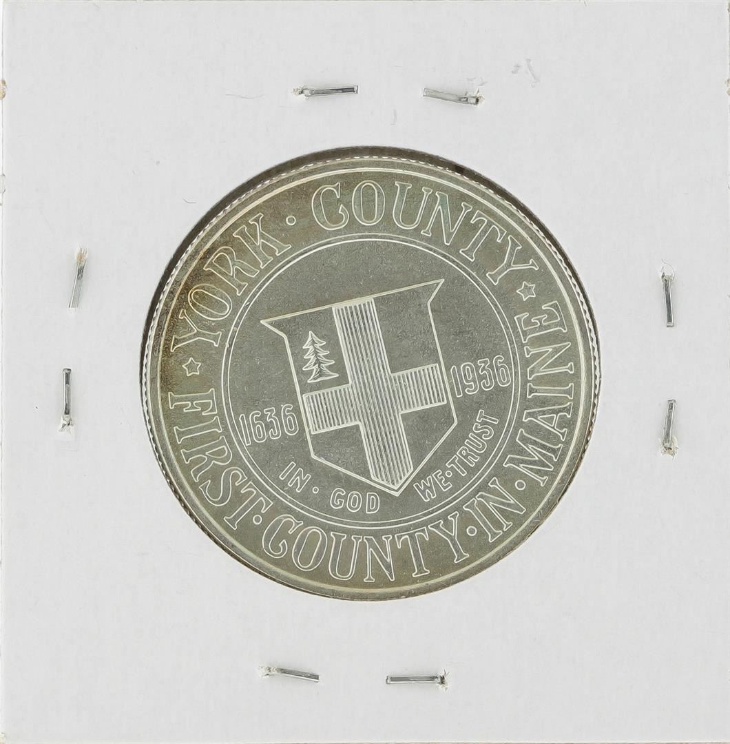 One 1936 York County, Maine Tercentenary Commemorative Half Dollar Coin.