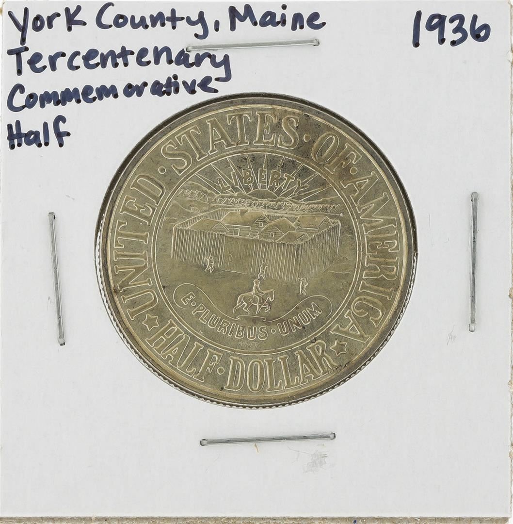 One 1936 York County, Maine Tercentenary Commemorative Half Dollar Coin.