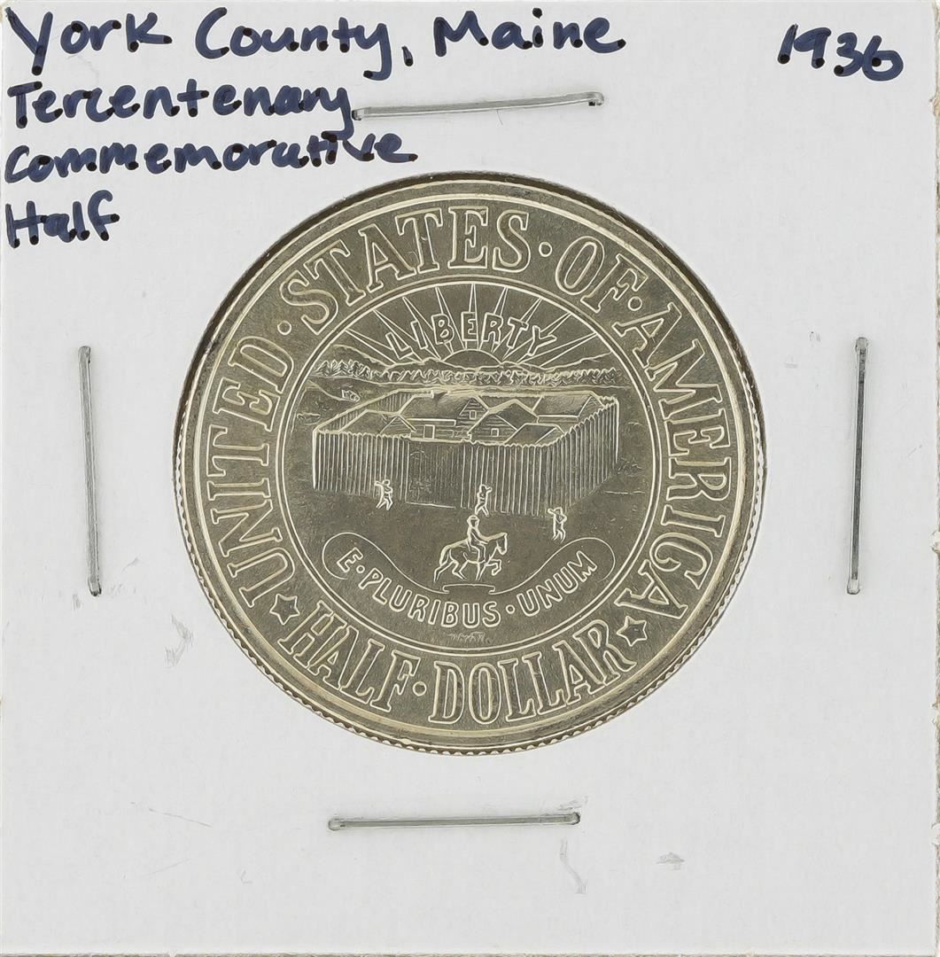 One 1936 York County, Maine Tercentenary Commemorative Half Dollar Coin.