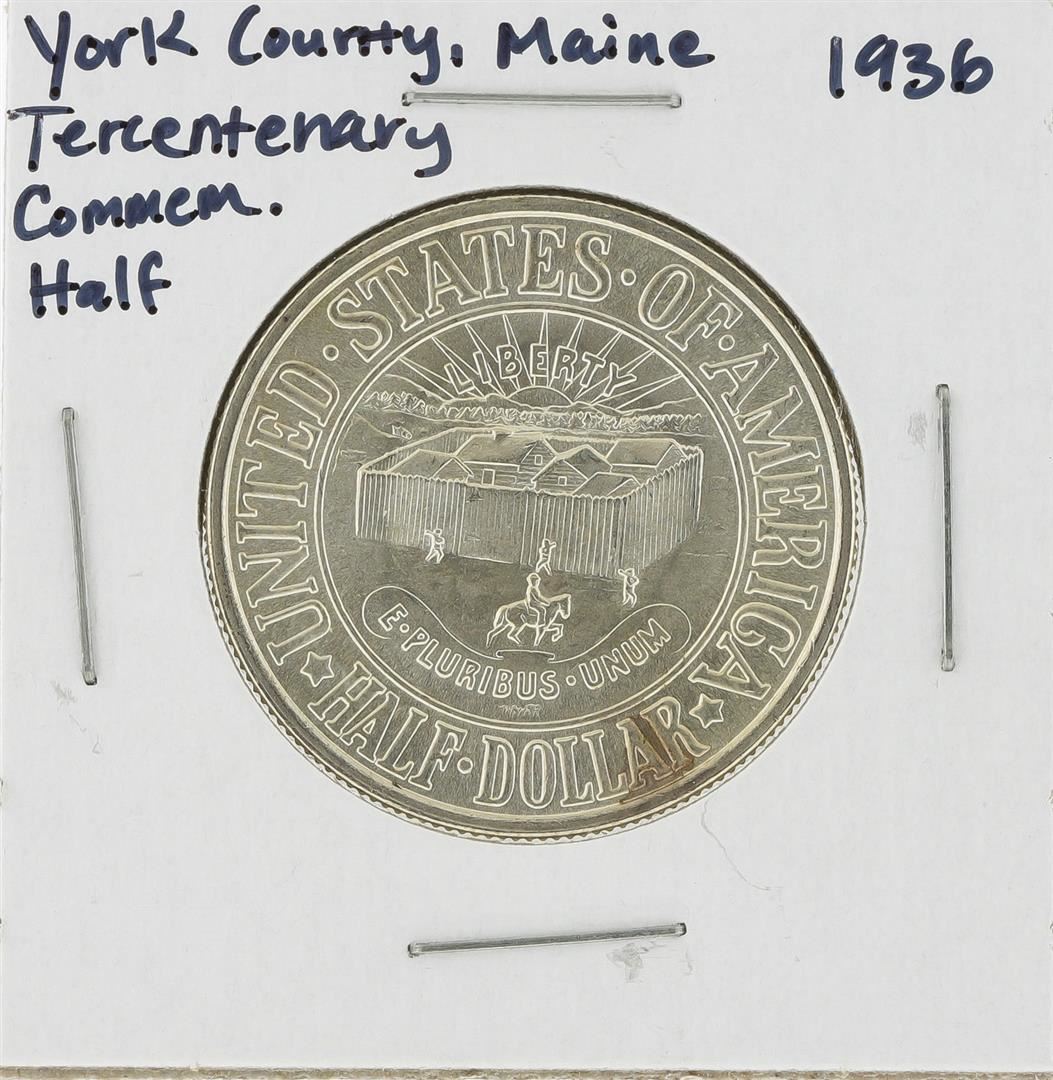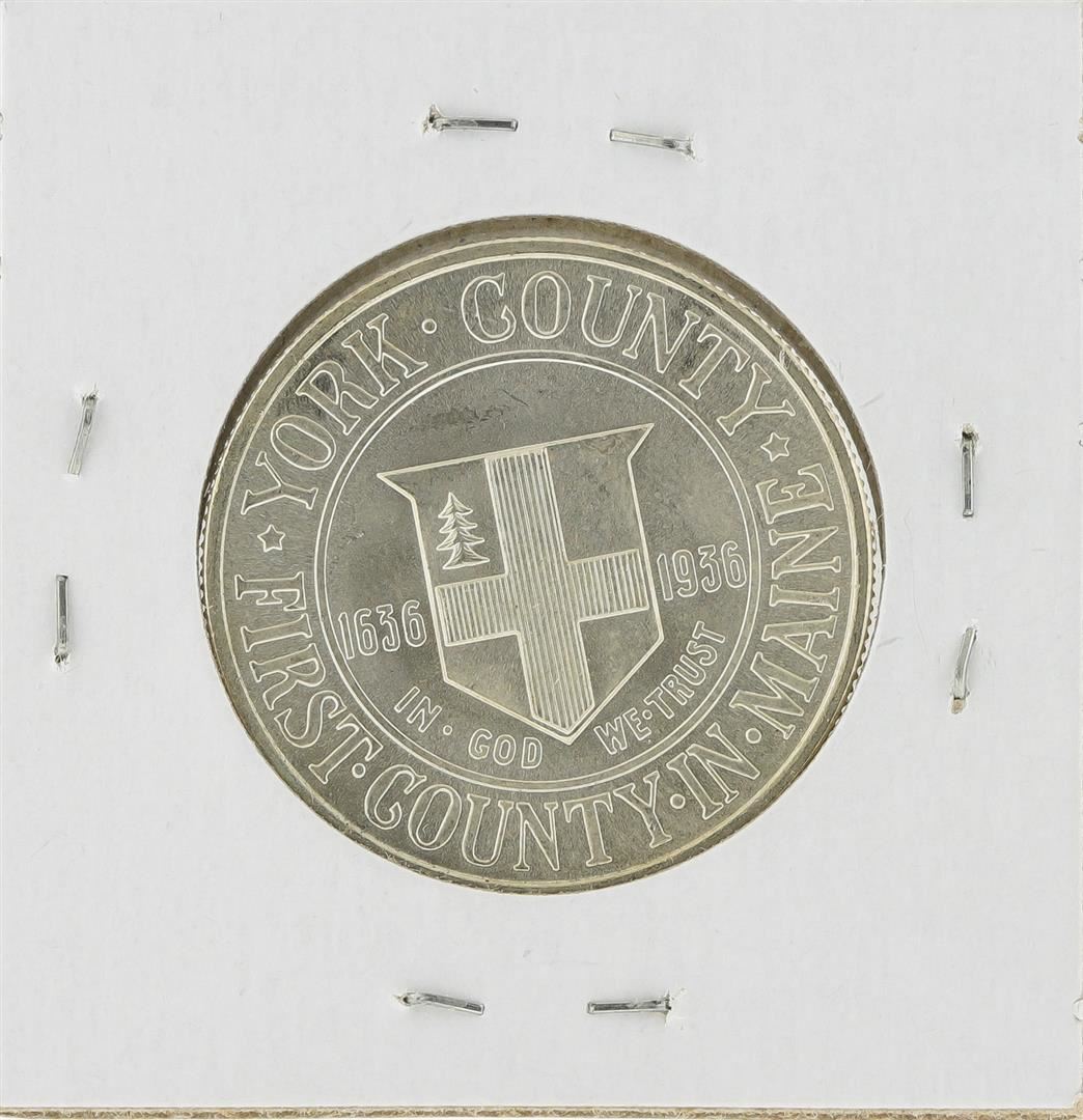 One 1936 York County, Maine Tercentenary Commemorative Half Dollar Coin.