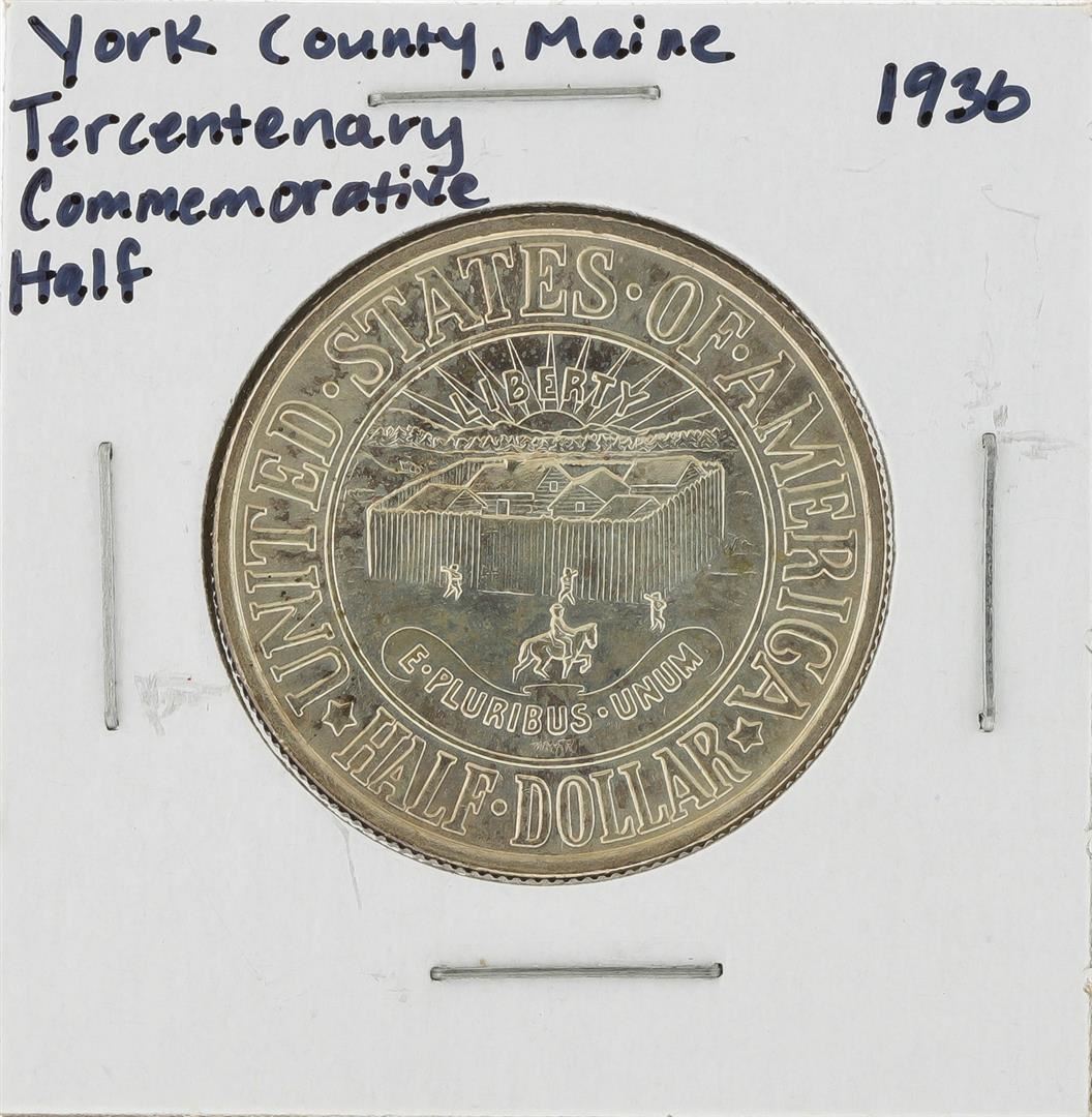 One 1936 York County, Maine Tercentenary Commemorative Half Dollar Coin.