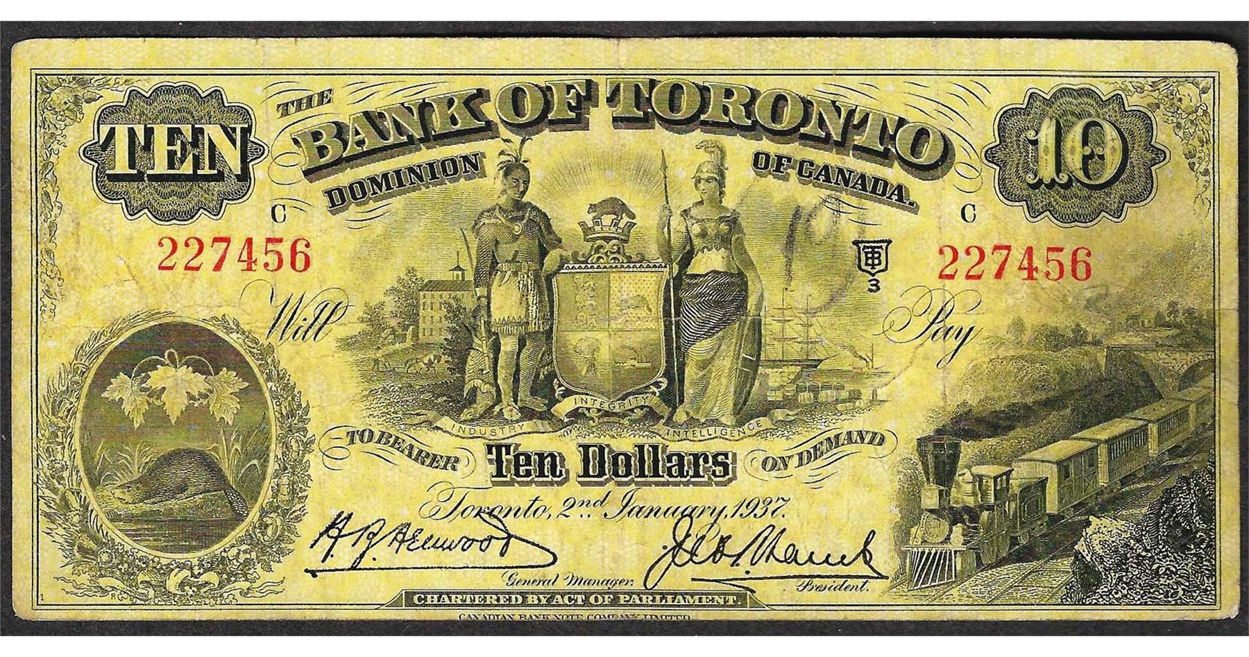 One 1937 $10 Bank of Toronto Dominion of Canada Note.