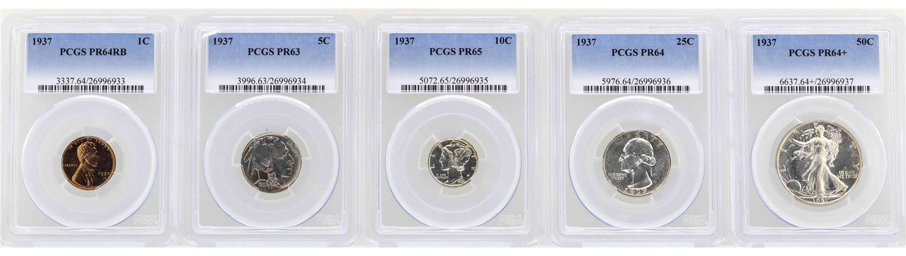 1937 (5) Coin Proof Set PCGS Graded PR63/64/65