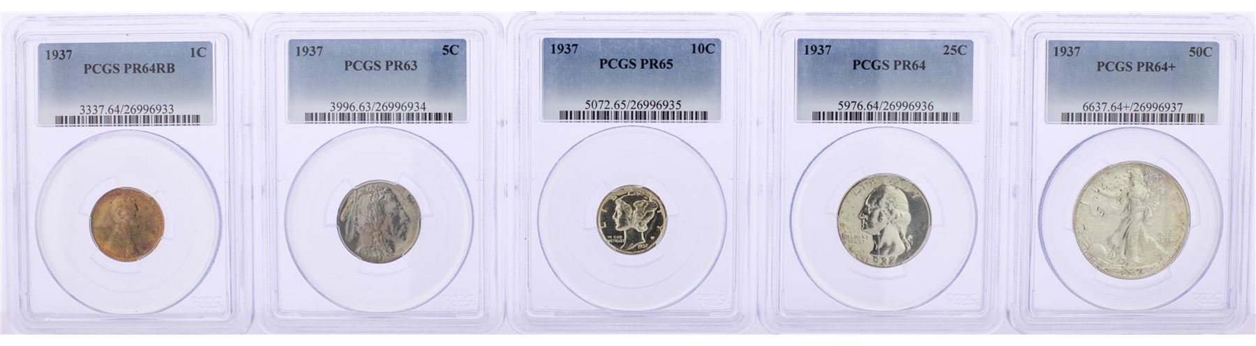 One 1937 (5) Coin Proof Set PCGS Graded PR63/PR64/PR65. PCGS Graded.