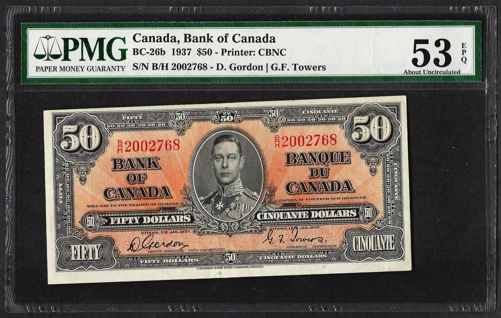 1937 $50 Bank of Canada Note BC-26b PMG About Uncirculated 53EPQ