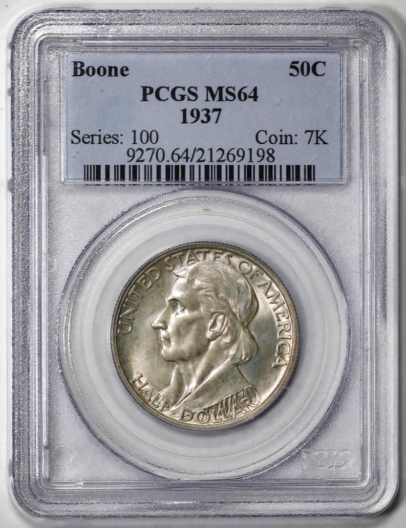 1937  Boone Commemorative Half Dollar Coin PCGS MS64