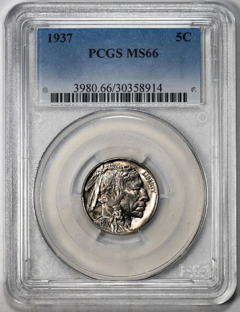 One 1937 Buffalo Nickel Cent Coin PCGS MS66. PCGS Graded.