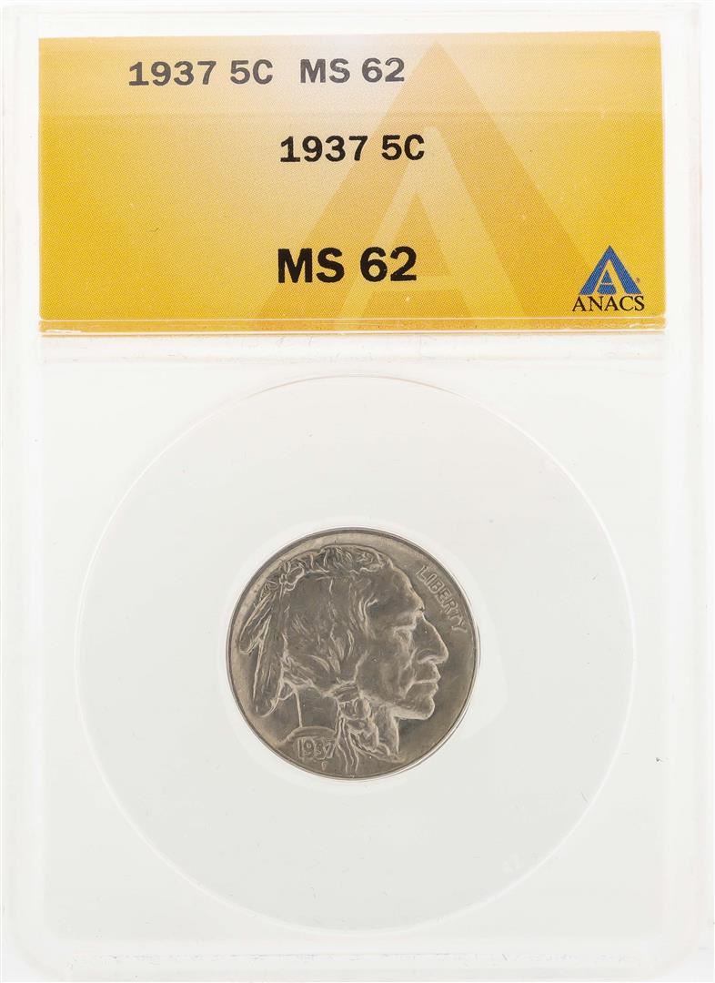 One 1937 Buffalo Nickel Coin ANACS MS62. ANACS Certified.