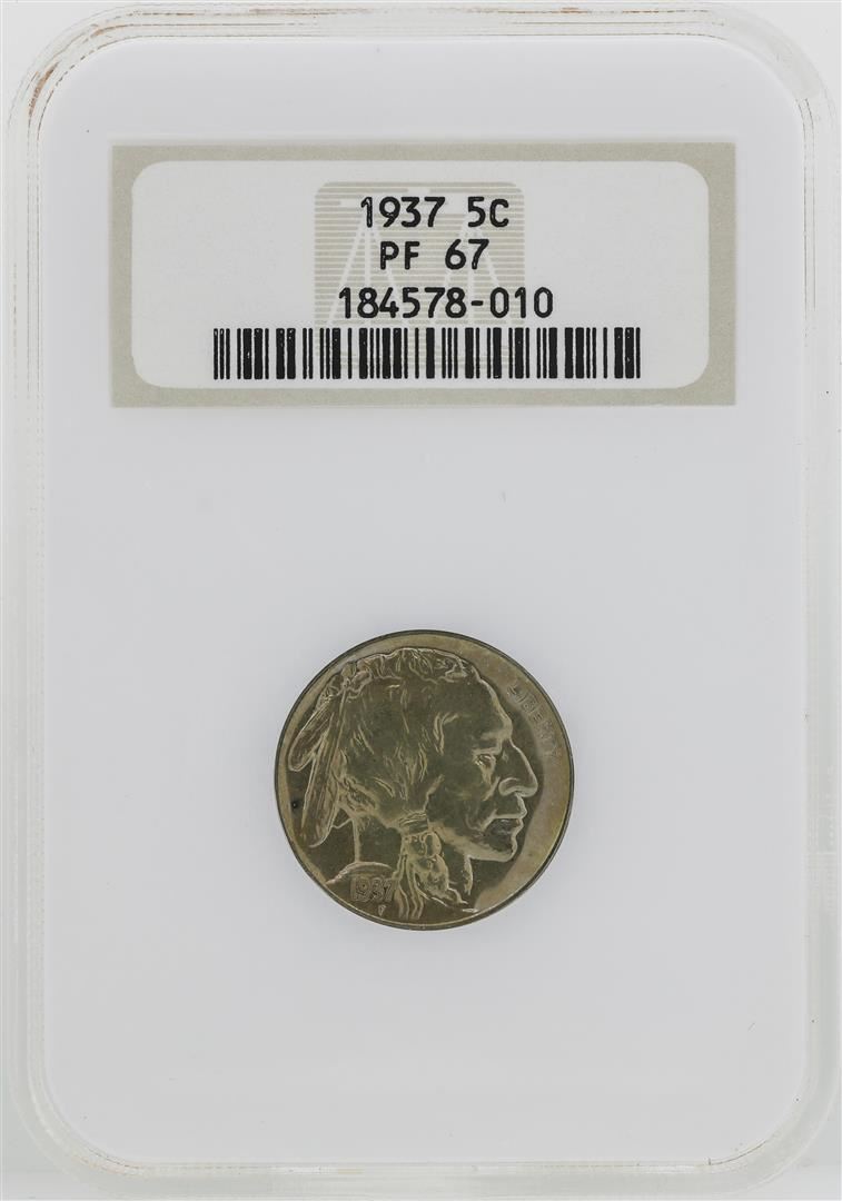 One 1937 Buffalo Nickel Proof Coin NGC PF67. NGC Certified.