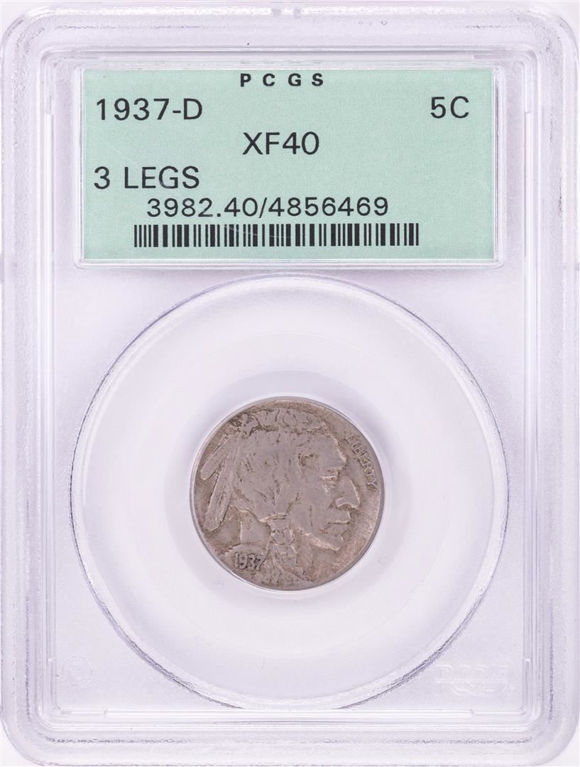 1937-D 3 Legged Buffalo Nickel Coin PCGS XF40 Old Green Holder