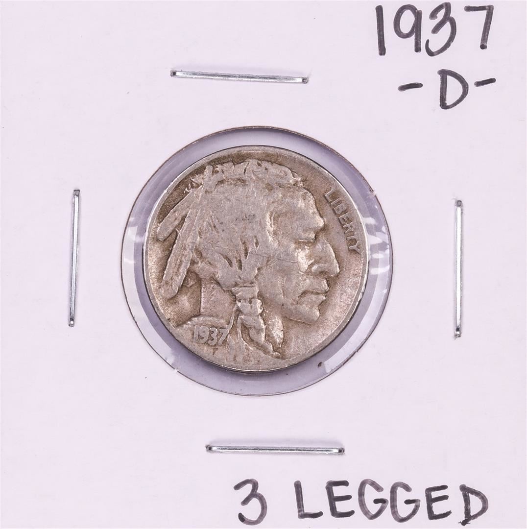 One 1937-D 3 Legged Buffalo Nickel Coin.