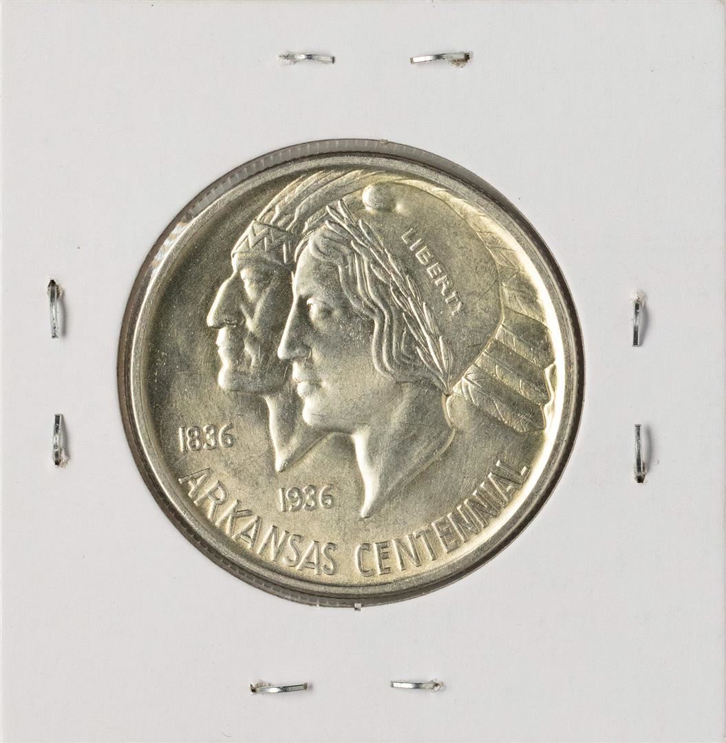 One 1937-D Arkansas Centennial Commemorative Half Dollar Coin.