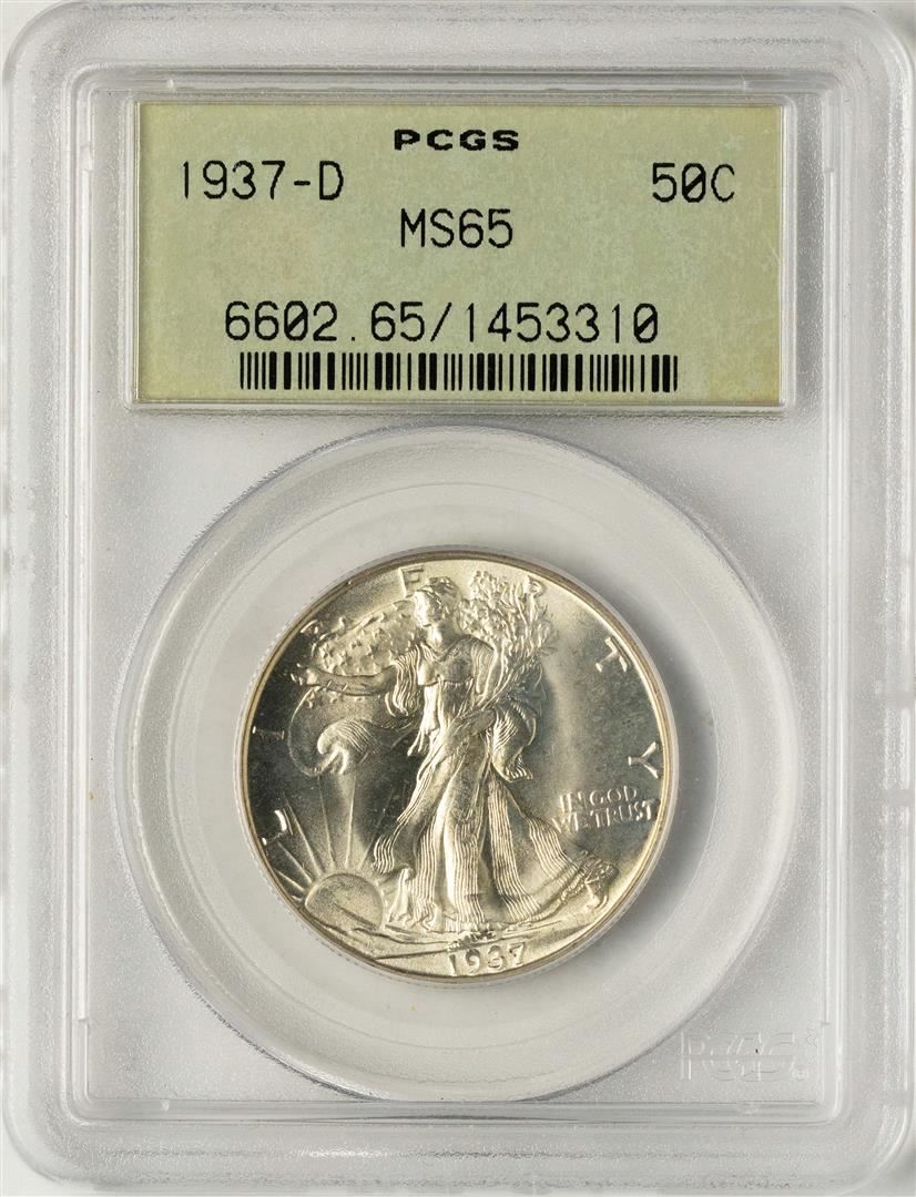 1937-D Walking Liberty Half Dollar Coin PCGS MS65 Old Green Holder