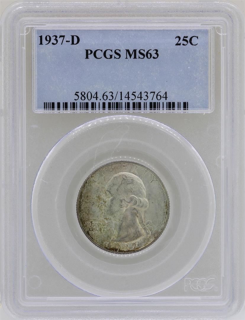 One 1937-D Washington Quarter Coin PCGS MS63. PCGS Graded.