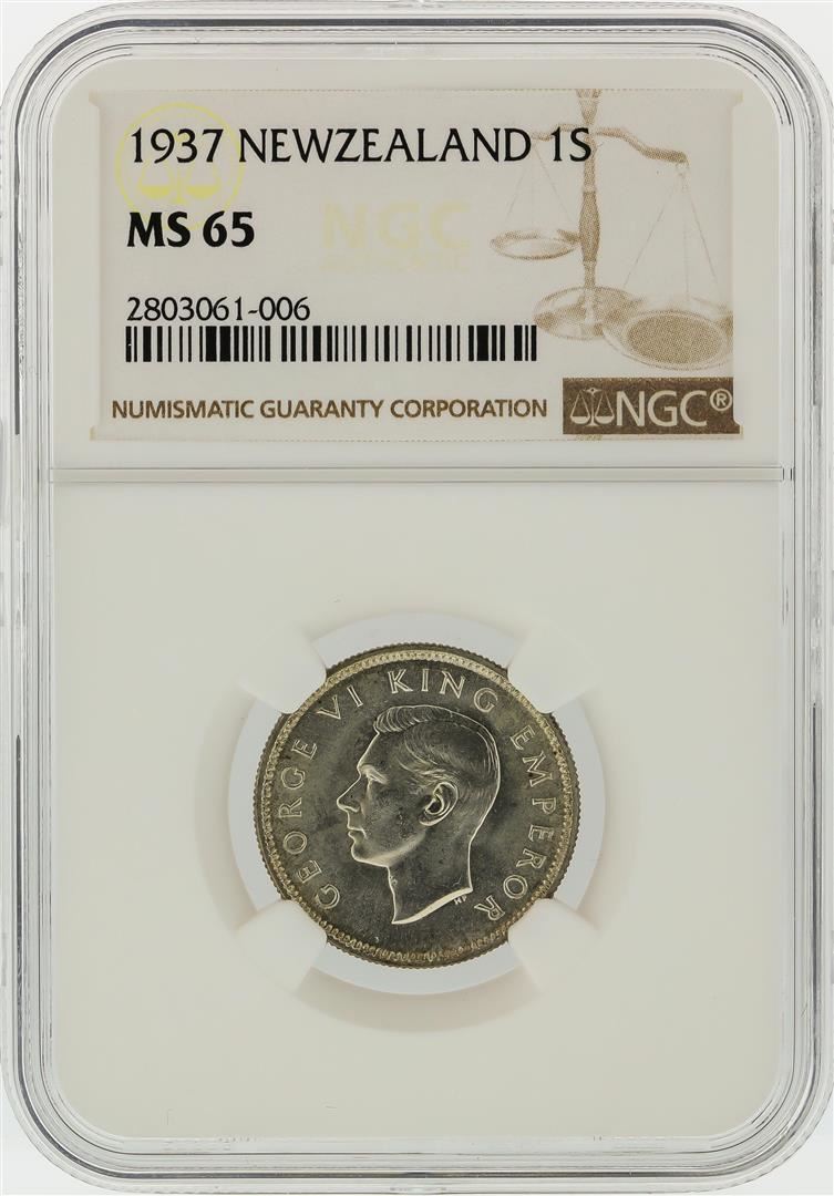 One 1937 New Zealand 1S Coin NGC Graded MS65. NGC Certified.