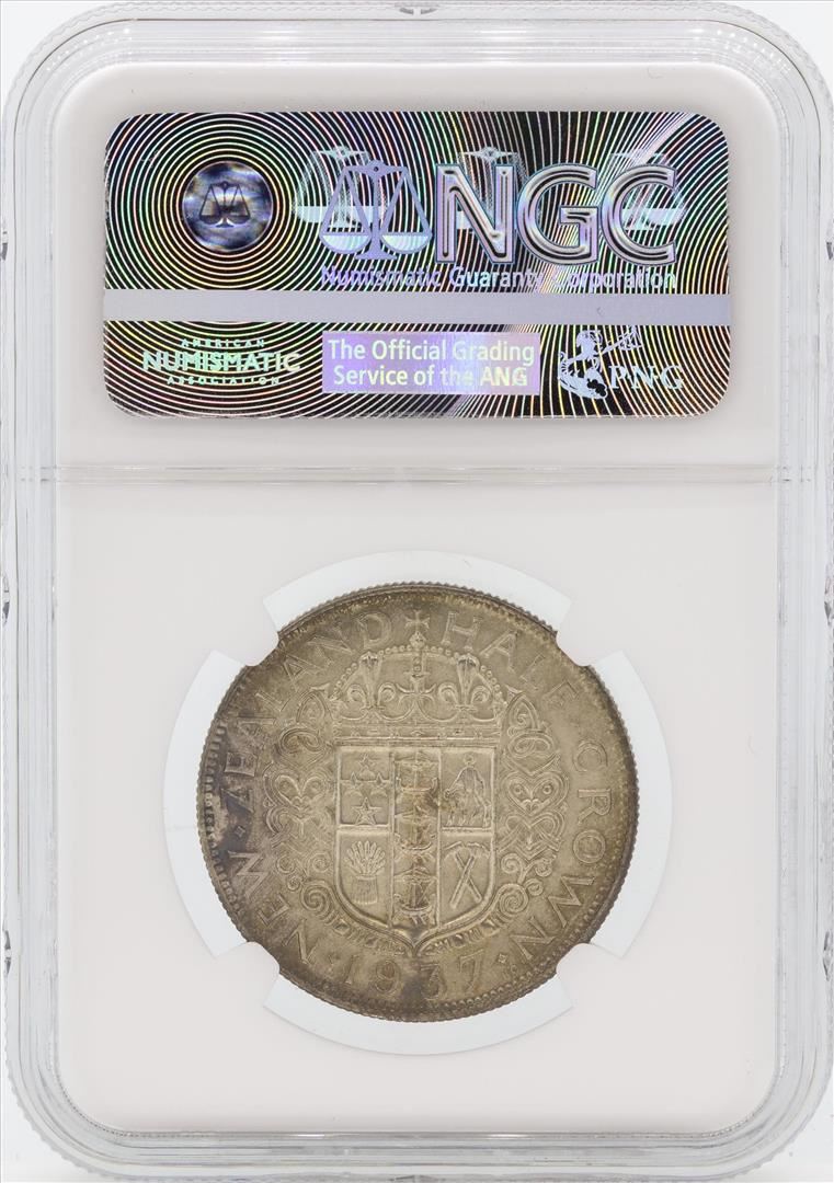 One 1937 Newzealand 1/2 Crown Silver Coin NGC MS64. NGC Certified.
