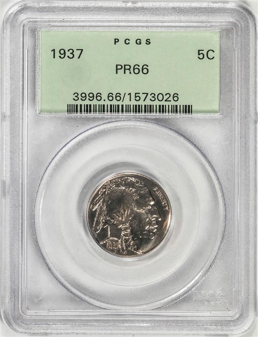One 1937 Proof Buffalo Nickel Coin PCGS PR66 Old Green Label. PCGS Graded.