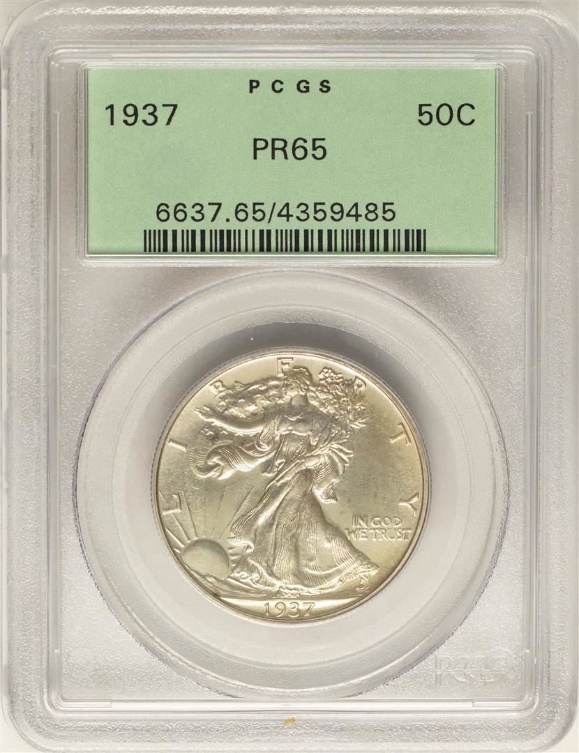 1937 Proof Walking Liberty Half Dollar Coin PCGS PR65 Old Green Holder