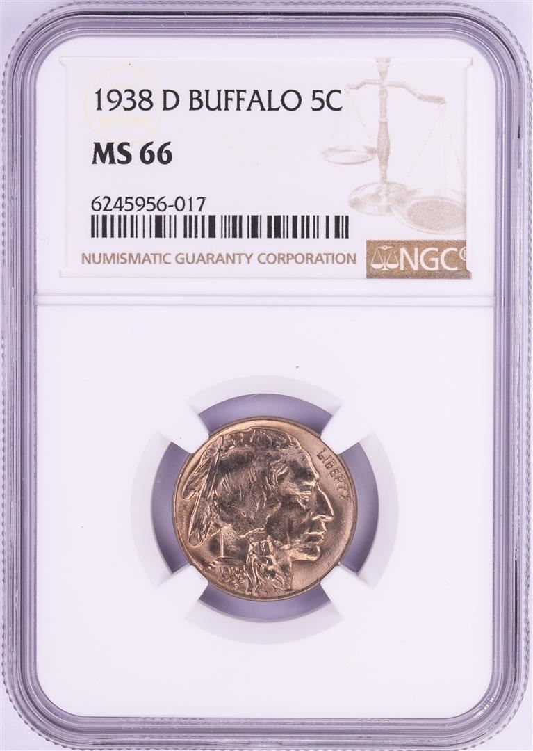 One 1938-D Buffalo Nickel Coin NGC MS66. NGC Certified.