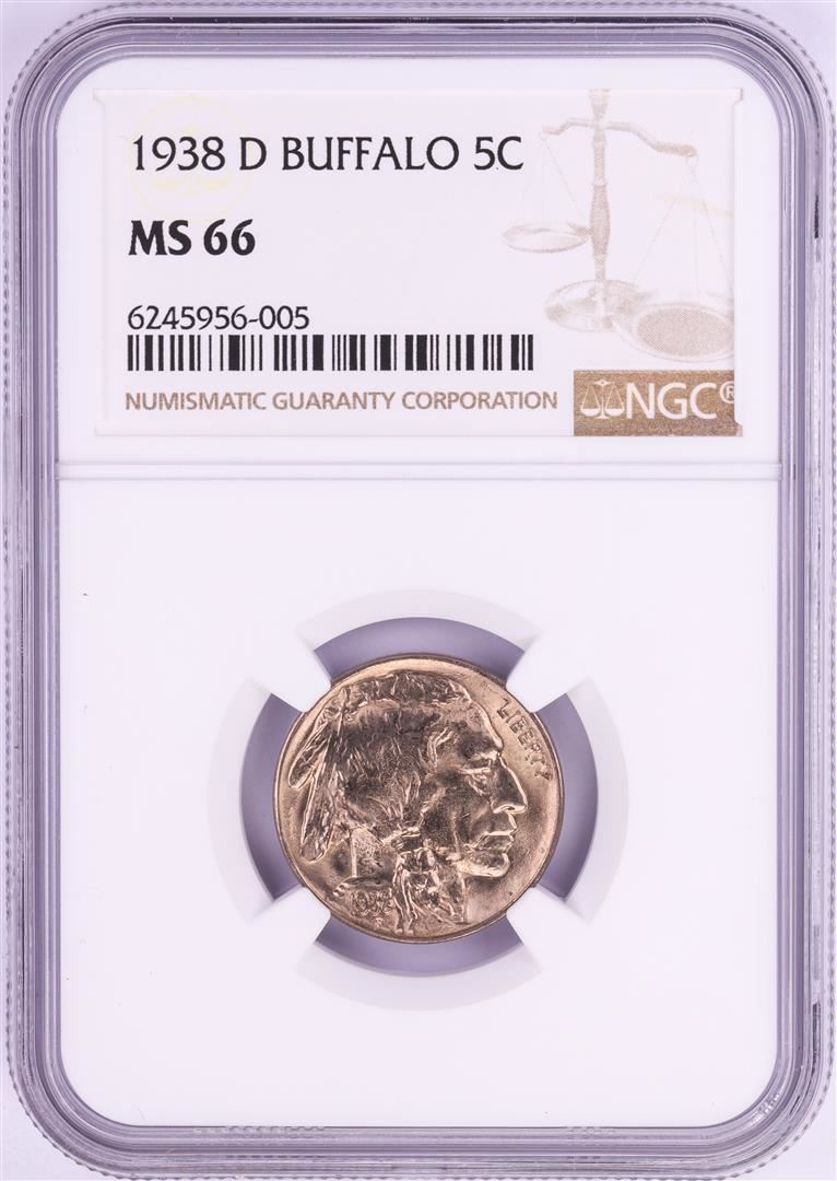 One 1938-D Buffalo Nickel Coin NGC MS66. NGC Certified.