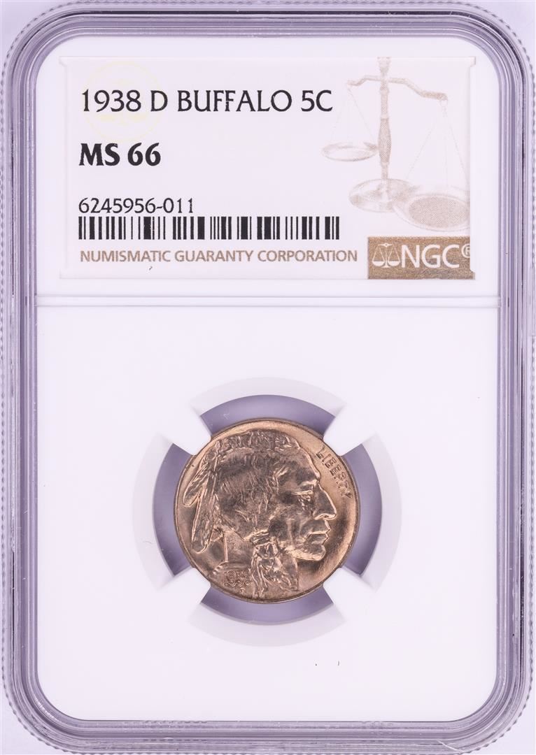 One 1938-D Buffalo Nickel Coin NGC MS66. NGC Certified.