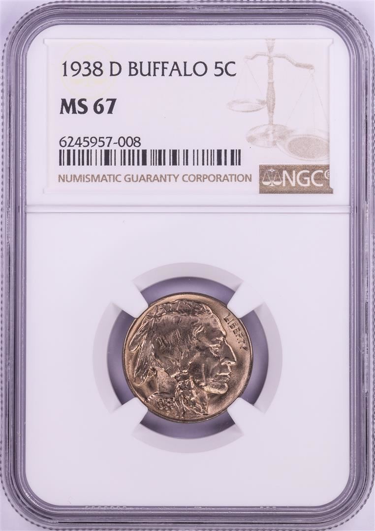 One 1938-D Buffalo Nickel Coin NGC MS67. NGC Certified.