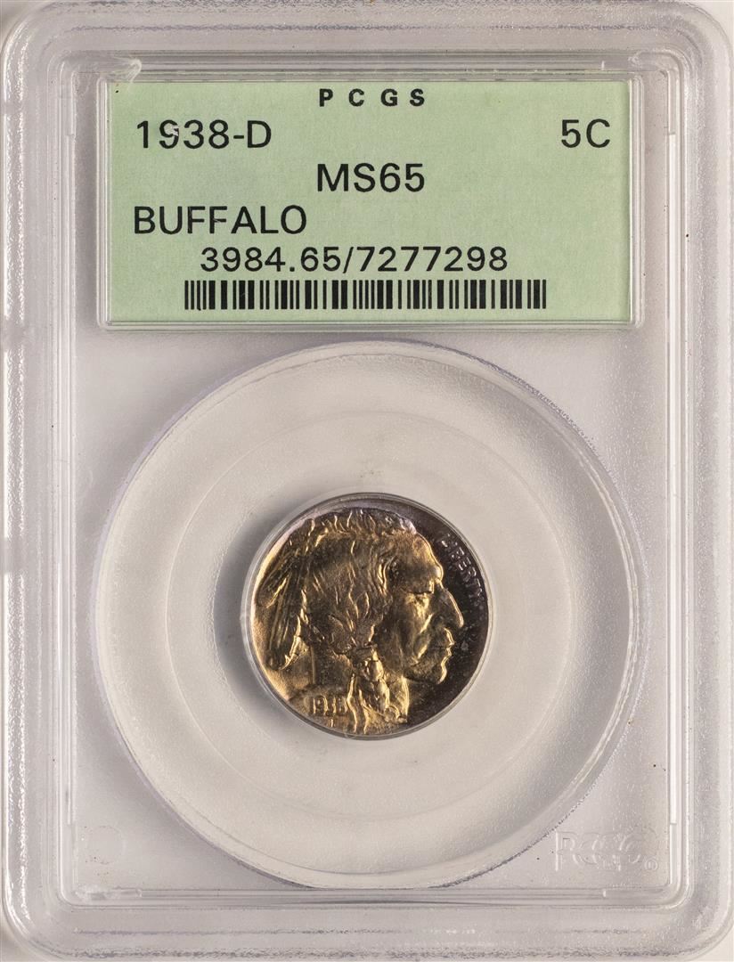 One 1938-D Buffalo Nickel Coin PCGS MS65 Old Green Holder. PCGS Graded.