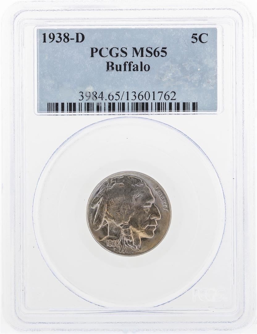 One 1938-D Buffalo Nickel Coin PCGS MS65. PCGS Graded.