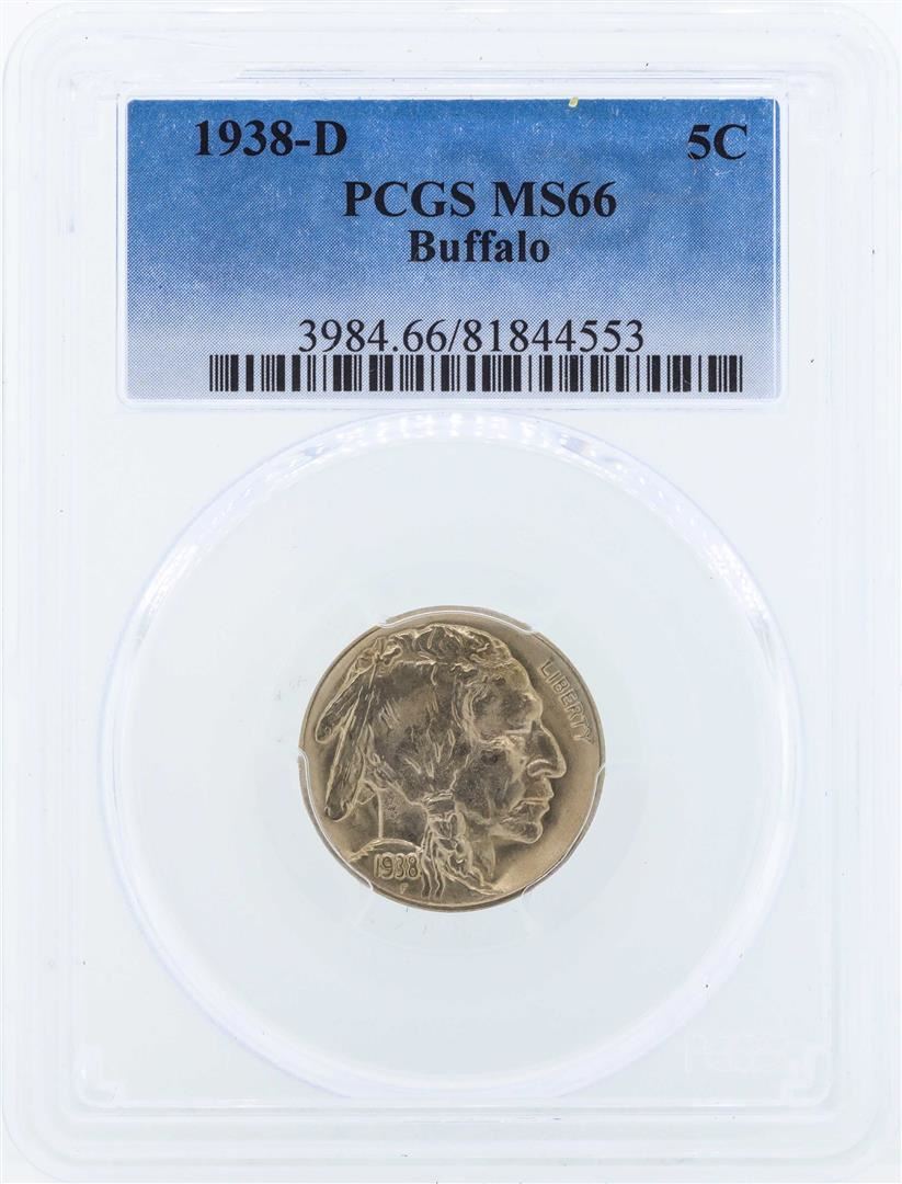 One 1938-D Buffalo Nickel Coin PCGS MS66. PCGS Graded.