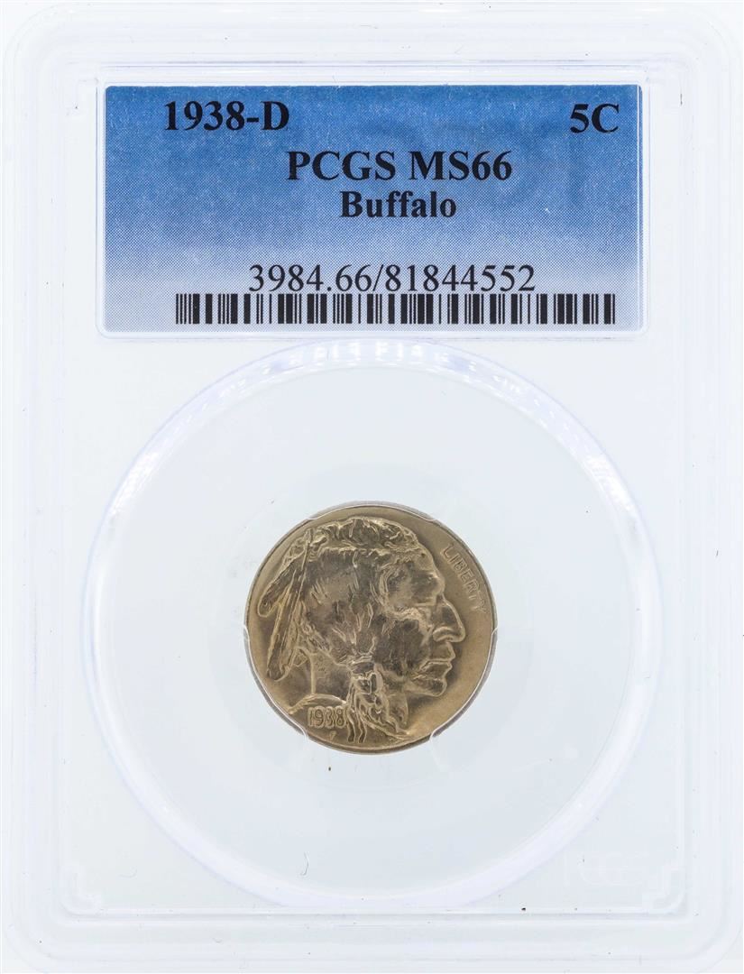 One 1938-D Buffalo Nickel Coin PCGS MS66. PCGS Graded.