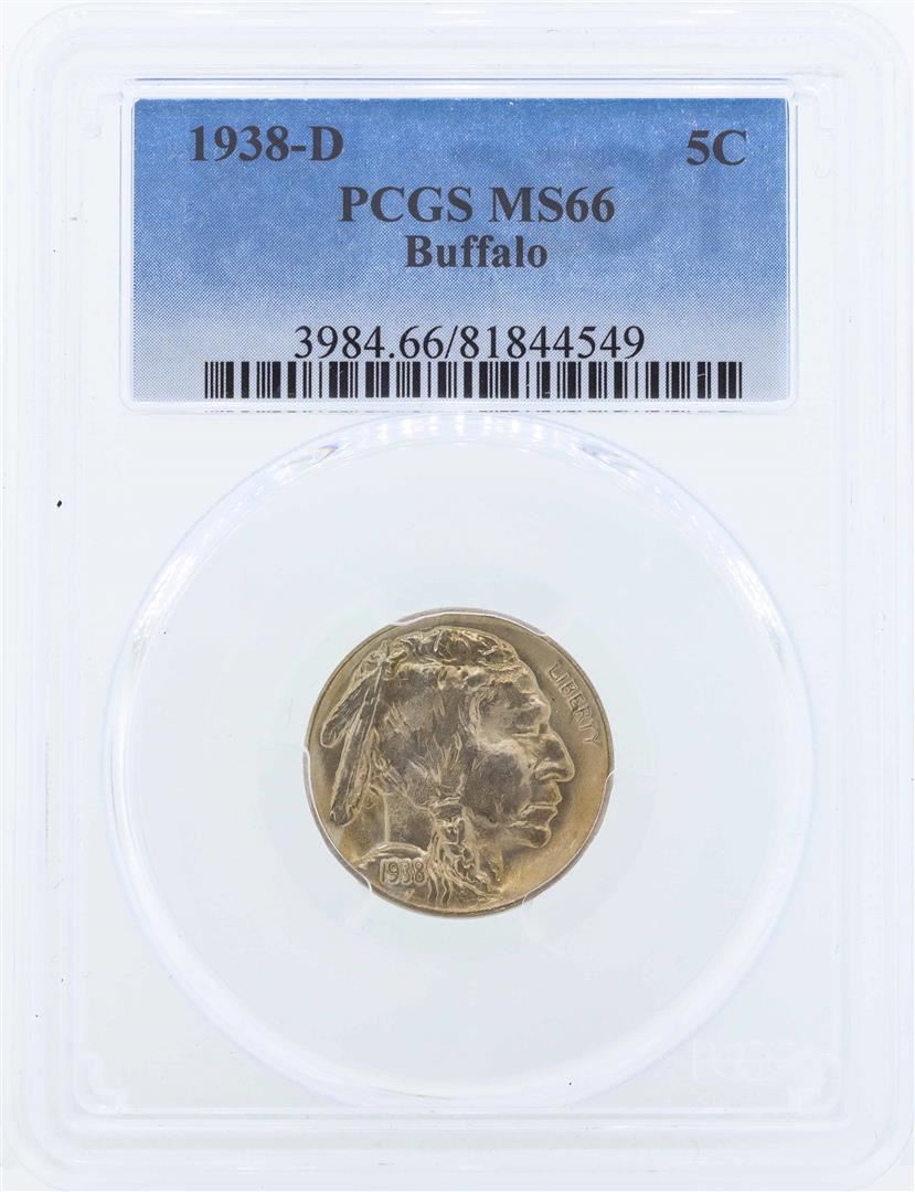 One 1938-D Buffalo Nickel Coin PCGS MS66. PCGS Graded.