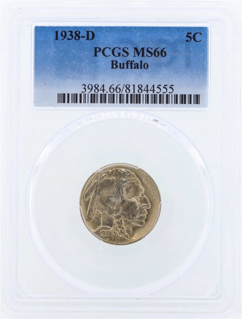 One 1938-D Buffalo Nickel Coin PCGS MS66. PCGS Graded.