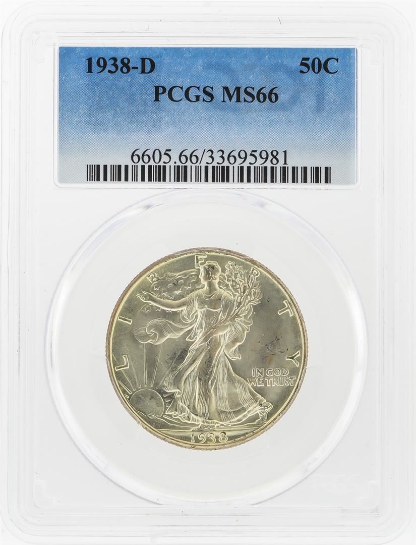 One 1938-D Liberty Walking Half Dollar Coin PCGS Graded MS66. PCGS Graded.