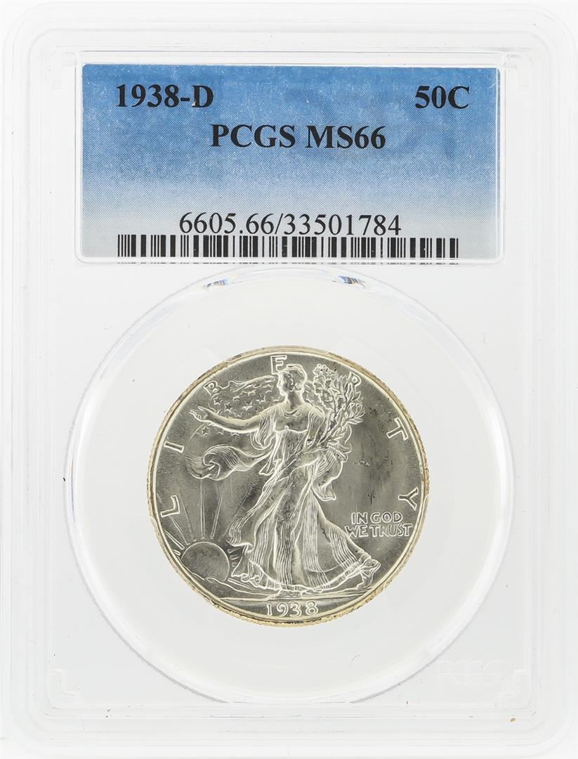 One 1938-D Liberty Walking Half Dollar Coin PCGS Graded MS66. PCGS Graded.