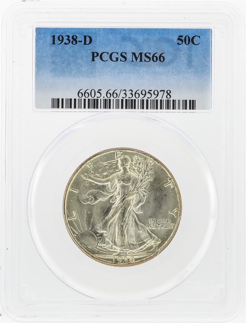 One 1938-D Liberty Walking Half Dollar Coin PCGS Graded MS66. PCGS Graded.