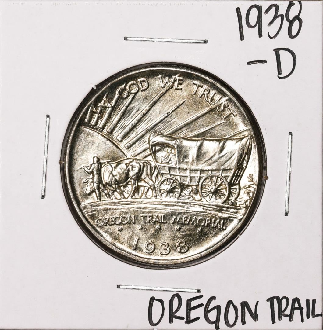One 1938-D Oregon Trail Memorial Commemorative Half Dollar Coin.