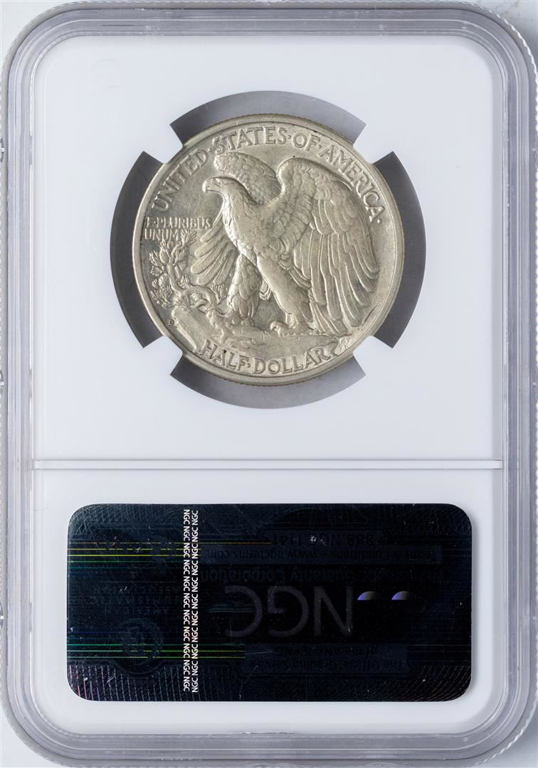 One 1938-D Walking Liberty Half Dollar Coin NGC AU50. NGC Certified.