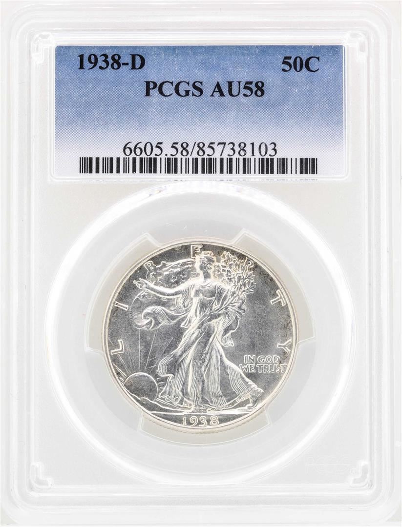 One 1938-D Walking Liberty Half Dollar Coin PCGS AU58. PCGS Graded.