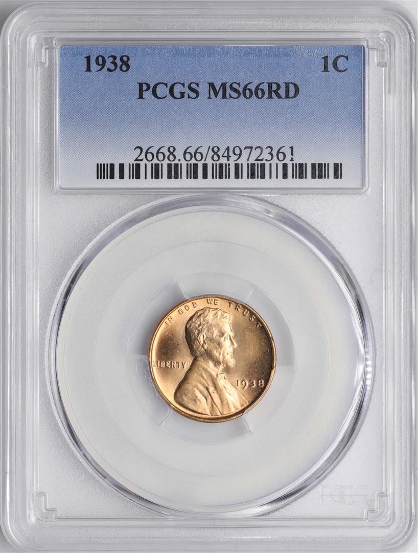 One 1938 Lincoln Wheat Cent Coin PCGS MS66RD. PCGS Graded.