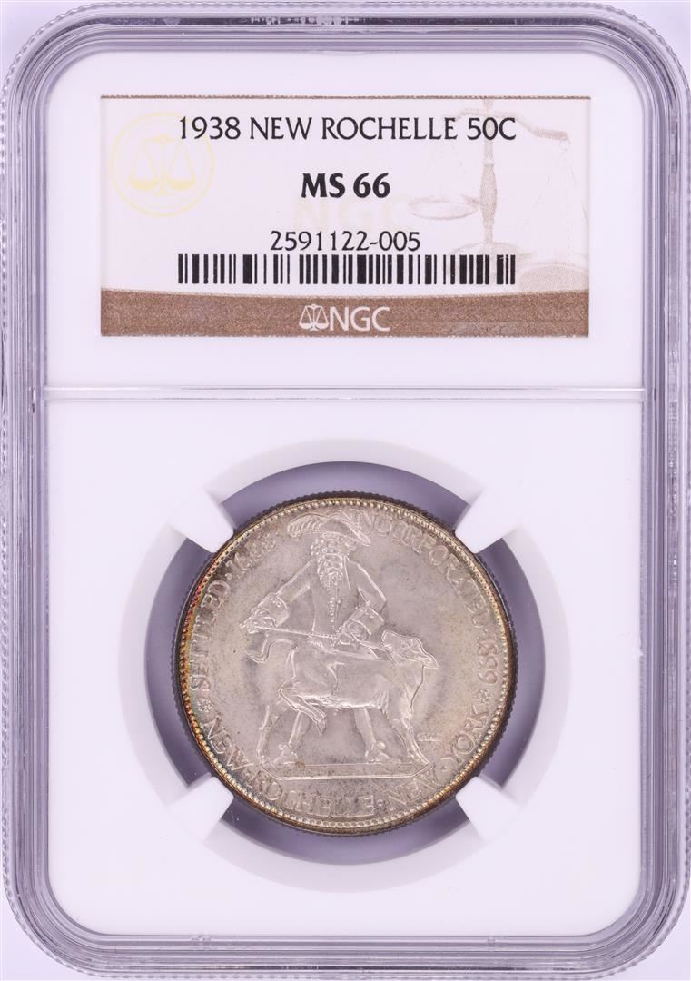 1938 New Rochelle Commemorative Half Dollar Coin NGC MS66