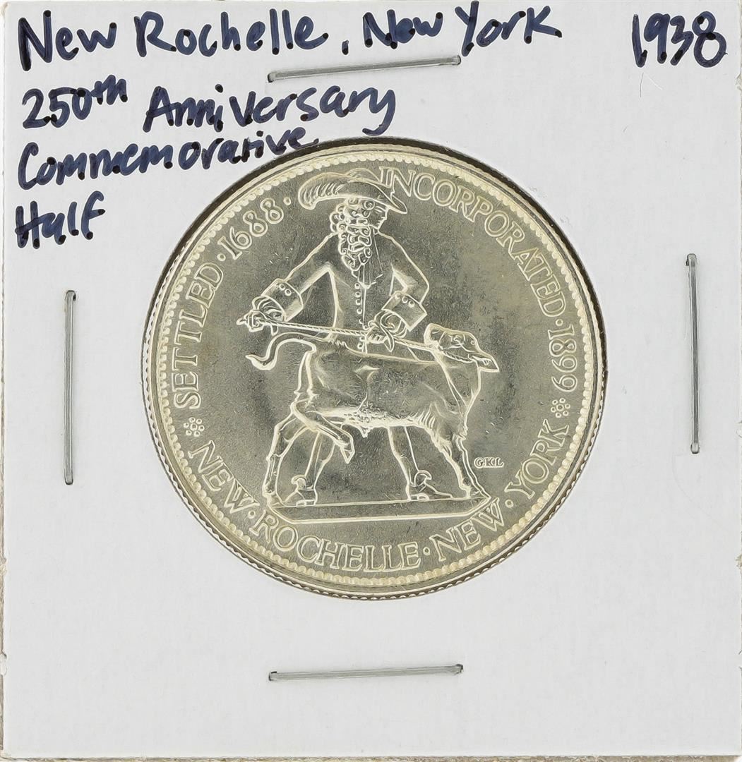 One 1938 New Rochelle New York 250th Anniversary Commemorative Half Dollar.