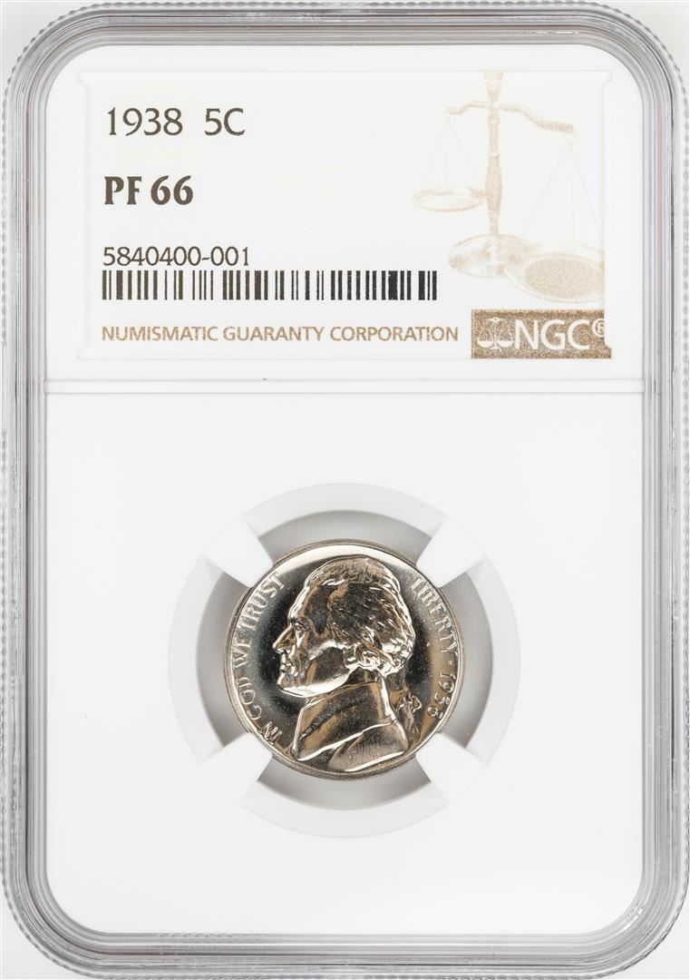 One 1938 Proof Jefferson Nickel Coin NGC PF66. NGC Certified.