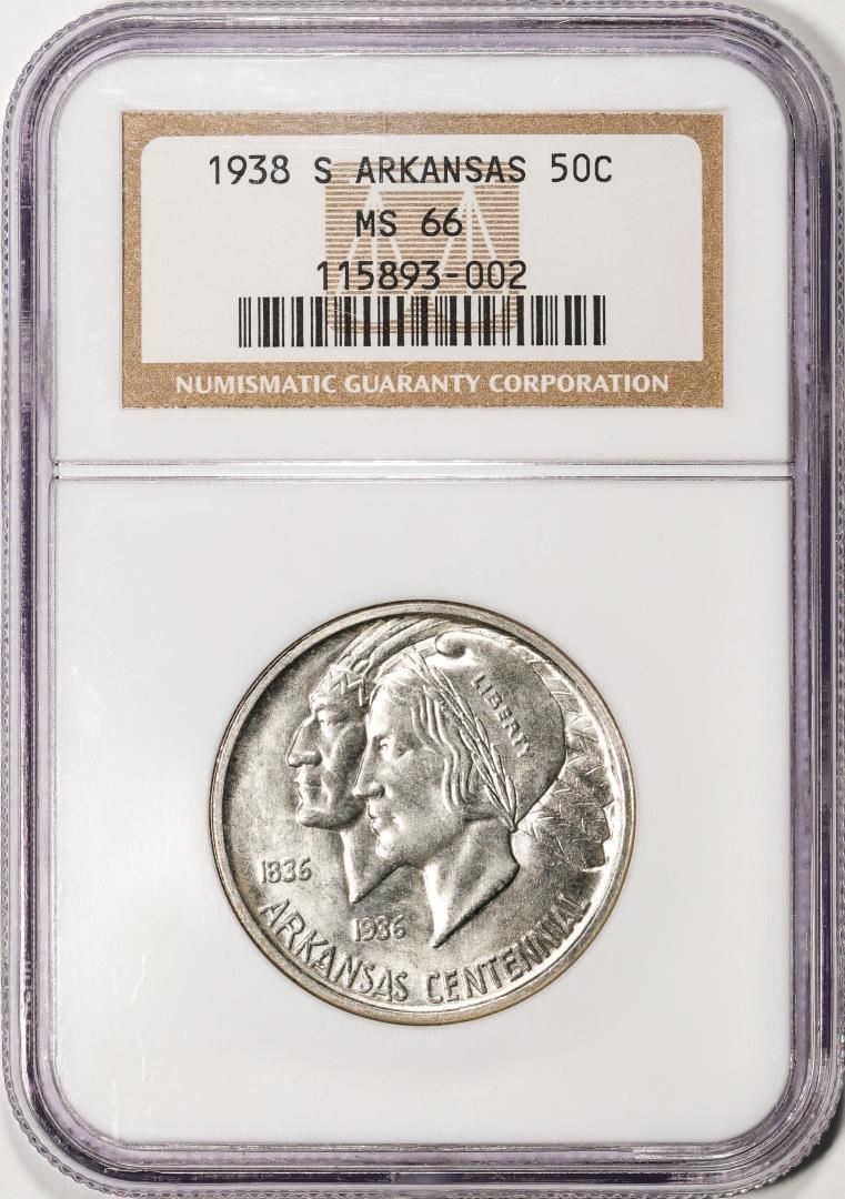 1938-S Arkansas Centennial Commemorative Half Dollar Coin NGC MS66