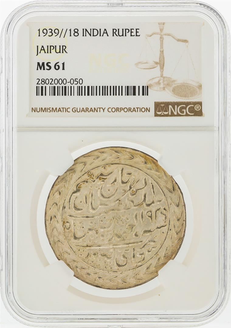 One 1939//18 India Rupee Jaipur NGC Graded MS61. NGC Certified.