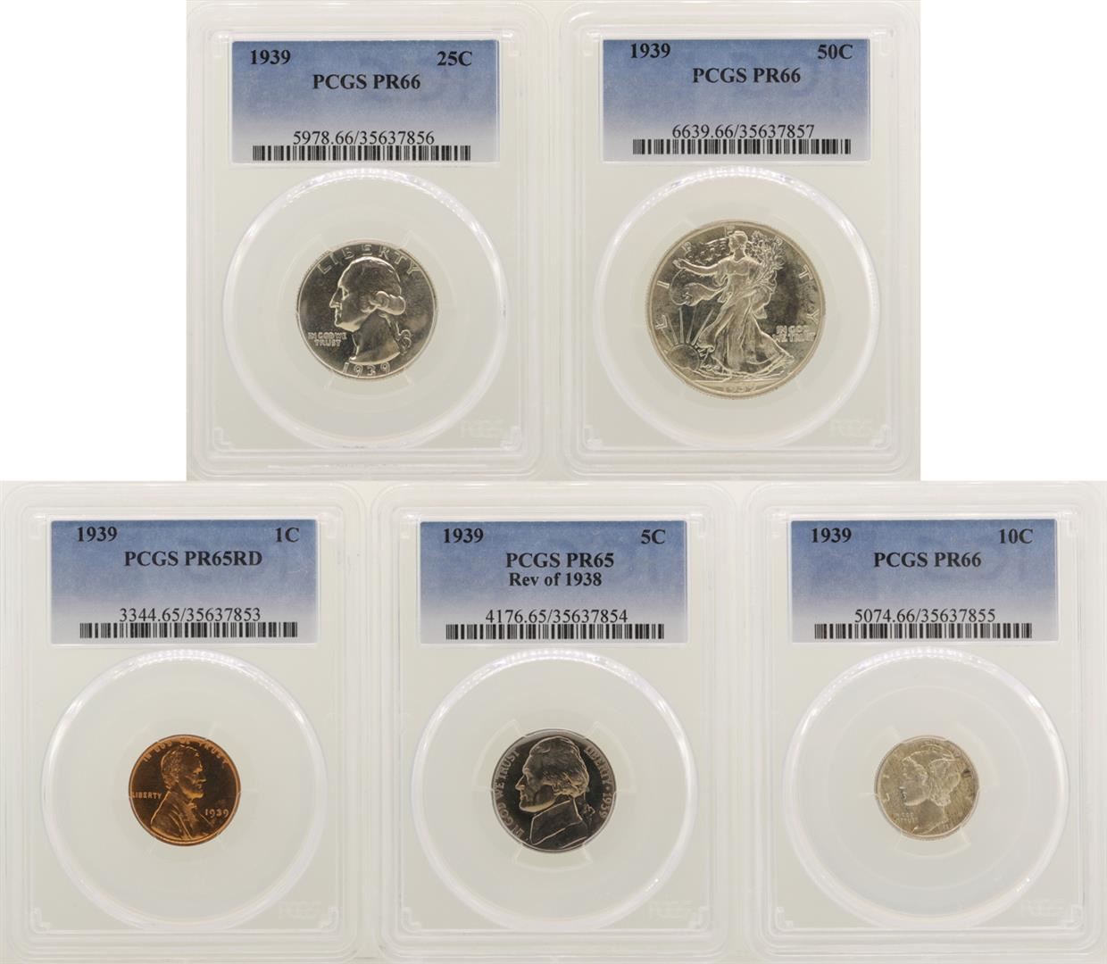One 1939 (5) Coin Proof Set PCGS Graded PR65/PR66. PCGS Graded.