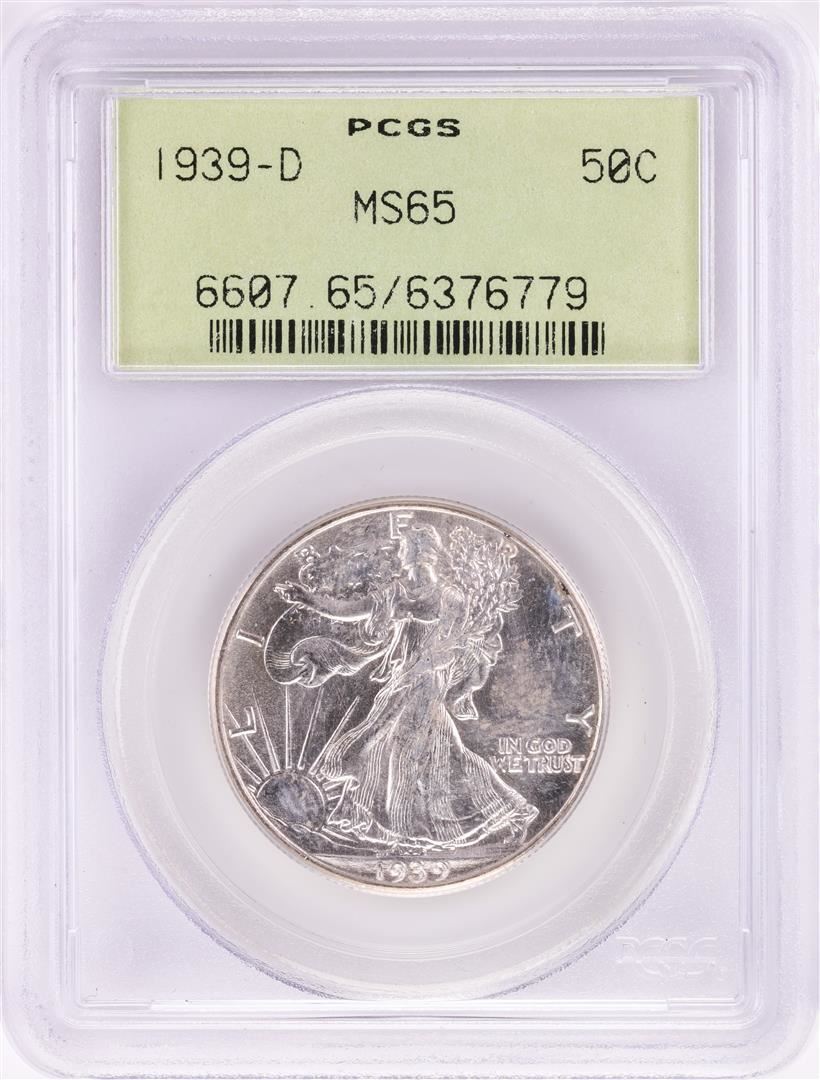1939-D Walking Liberty Half Dollar Coin PCGS MS65 Old Green Holder