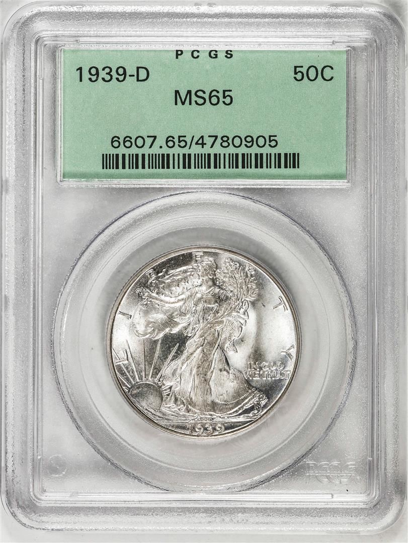 1939-D Walking Liberty Half Dollar Coin PCGS MS65 Old Green Holder